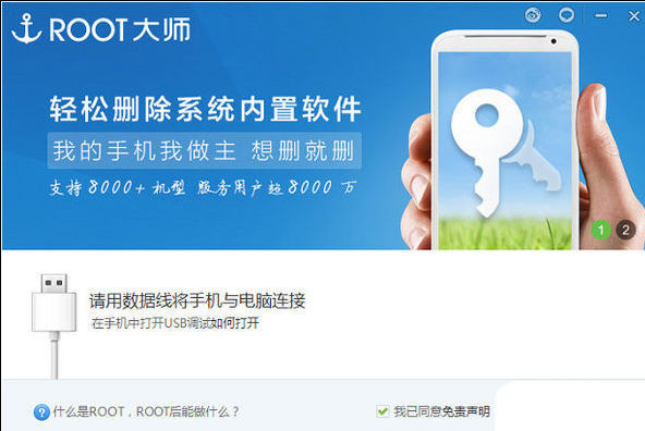2、打开ROOT大师,等待usb连接成功,如下图所示: