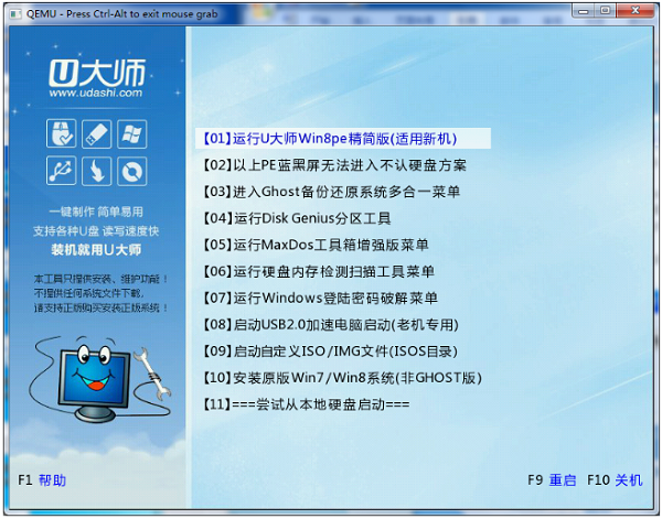 5、如果出现下图中的界面,说明U大师U盘启动制作工具启动成功