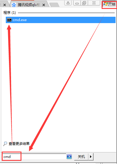 4.最后我们选择【开始】菜单栏,在搜索框中输入“cmd”并回车进入(或使用快捷键电脑上的windows图标键 + R,快速进入),输入 e: 按下回车进入e盘 ,然后输入:copy/b *.tdl 1.mp4 对E盘下所有tdl格式的文件进行合并。