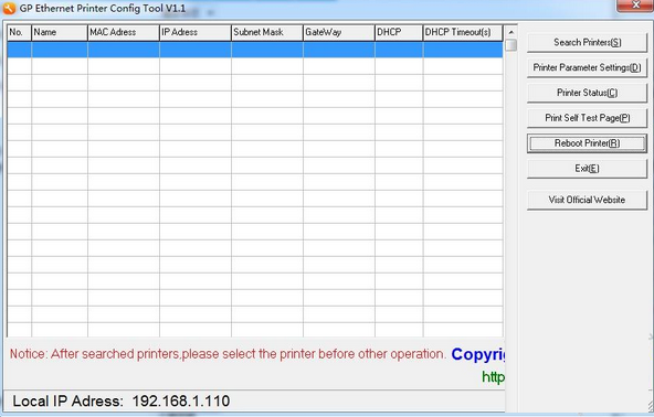 佳博GP以太网打印机测试及设置工具支持的打印机