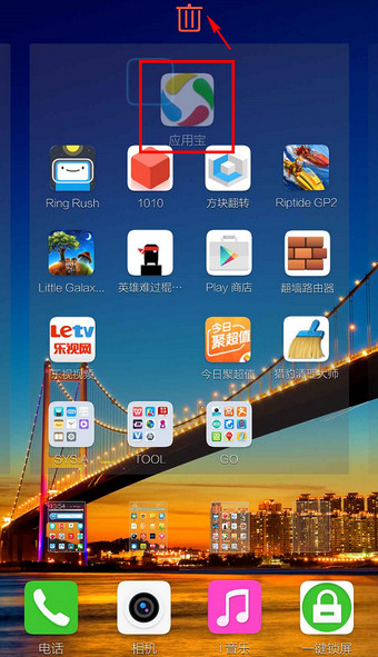 1.找到【应用宝】的应用图标(不是快捷方式),长按