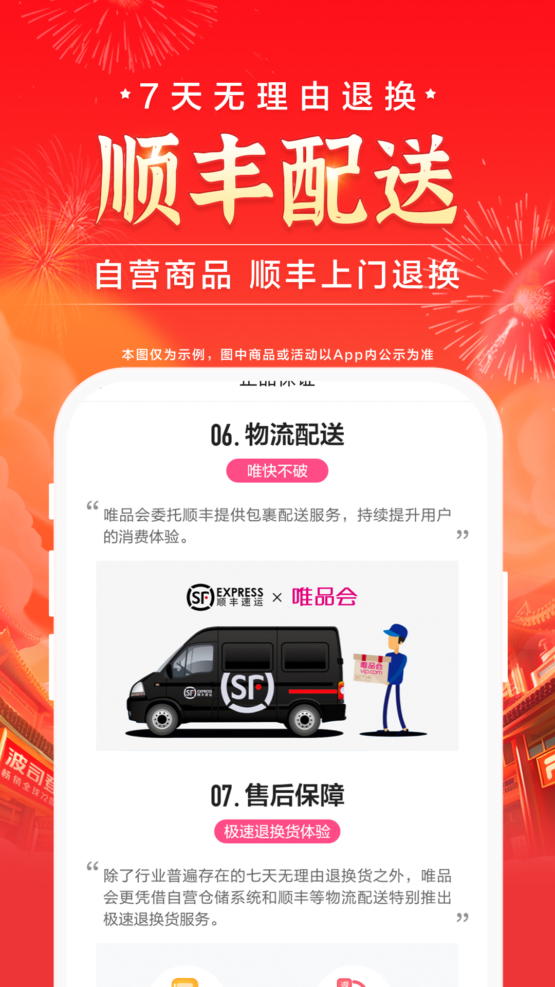 人工客服天天在线,7天无理由退货,自营商品免费上门收件(自行寄回返10元唯品币)