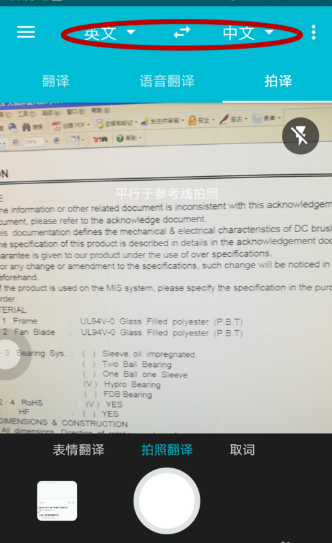 2、在“拍译”界面,可以通过摄像头进行快速翻译;