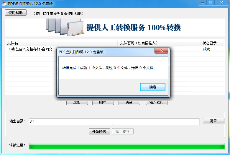 第三步:点“开始转换”按钮 (如果文件是有密码的,选中已加入到软件的文件,点“输入密码”,把密码输入进去,点确定,再点击开始转换。)