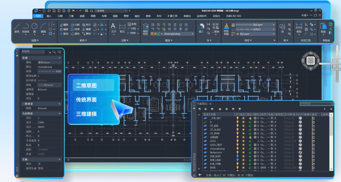 增强图层管理功能,可对图层进行各种操作,如整体关闭、打开等,方便用户对图纸进行分层查看和管理。