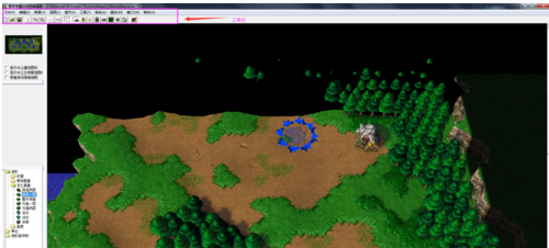 2、单击菜单栏下面的工具栏,工具栏包含了新建,打开地图,保存等选项,点击新建,使用选择刷子,单击选择放置的单位、物品