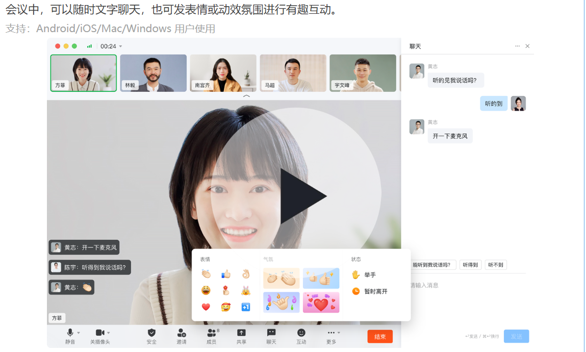 提供高清视频会议,支持屏幕共享、实时标注及多人发言,满足远程协作需求。