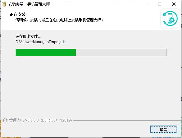 7、手机管理大师正在安装中,您需要耐心等待安装完成就可以了。