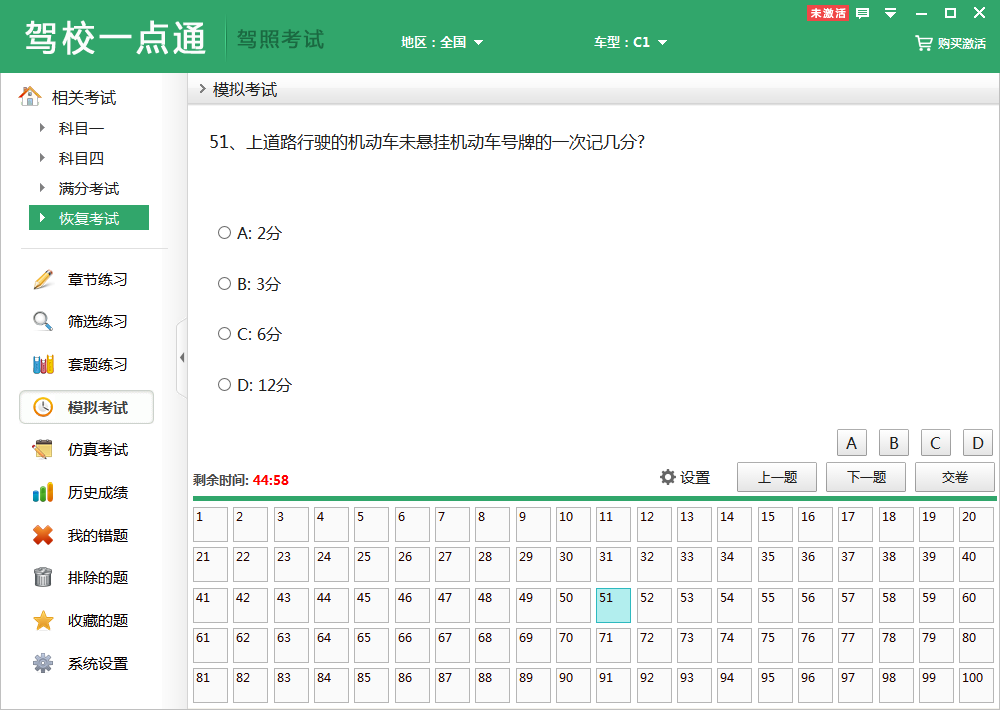 模拟考试:全真模拟考试,包含最新交规考题