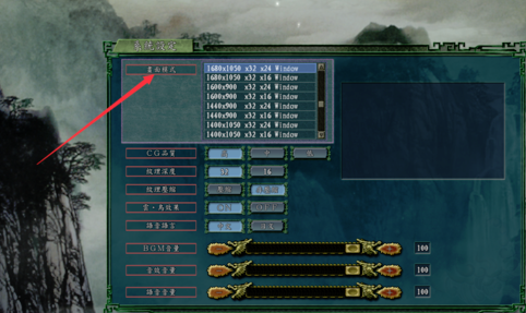 3、之后可以看到有个画面模式,后面默认的是Windows,就是窗口模式。