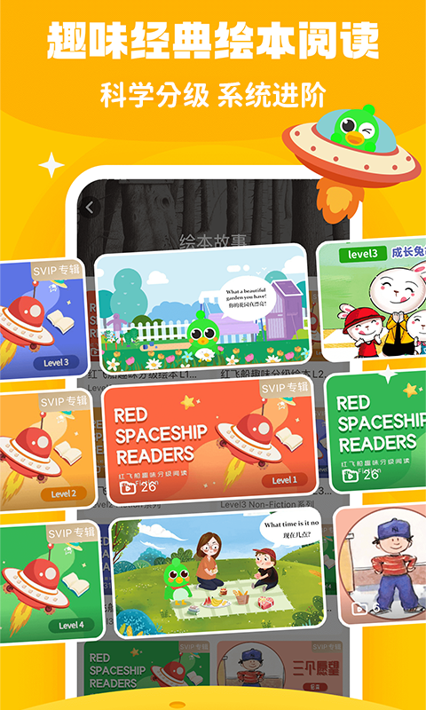 科学分级体系:根据年龄和语言水平设置难度等级,适配不同学习阶段,实现语言进阶精准匹配。