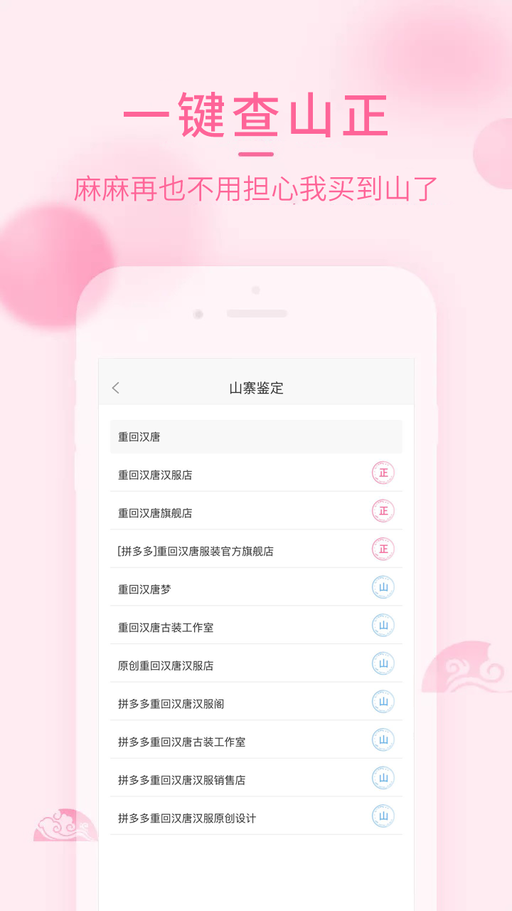 【鉴山正】 你可以一键查山正,汉服荟收录了上万条某宝某多山寨店铺信息,能帮你秒避坑。