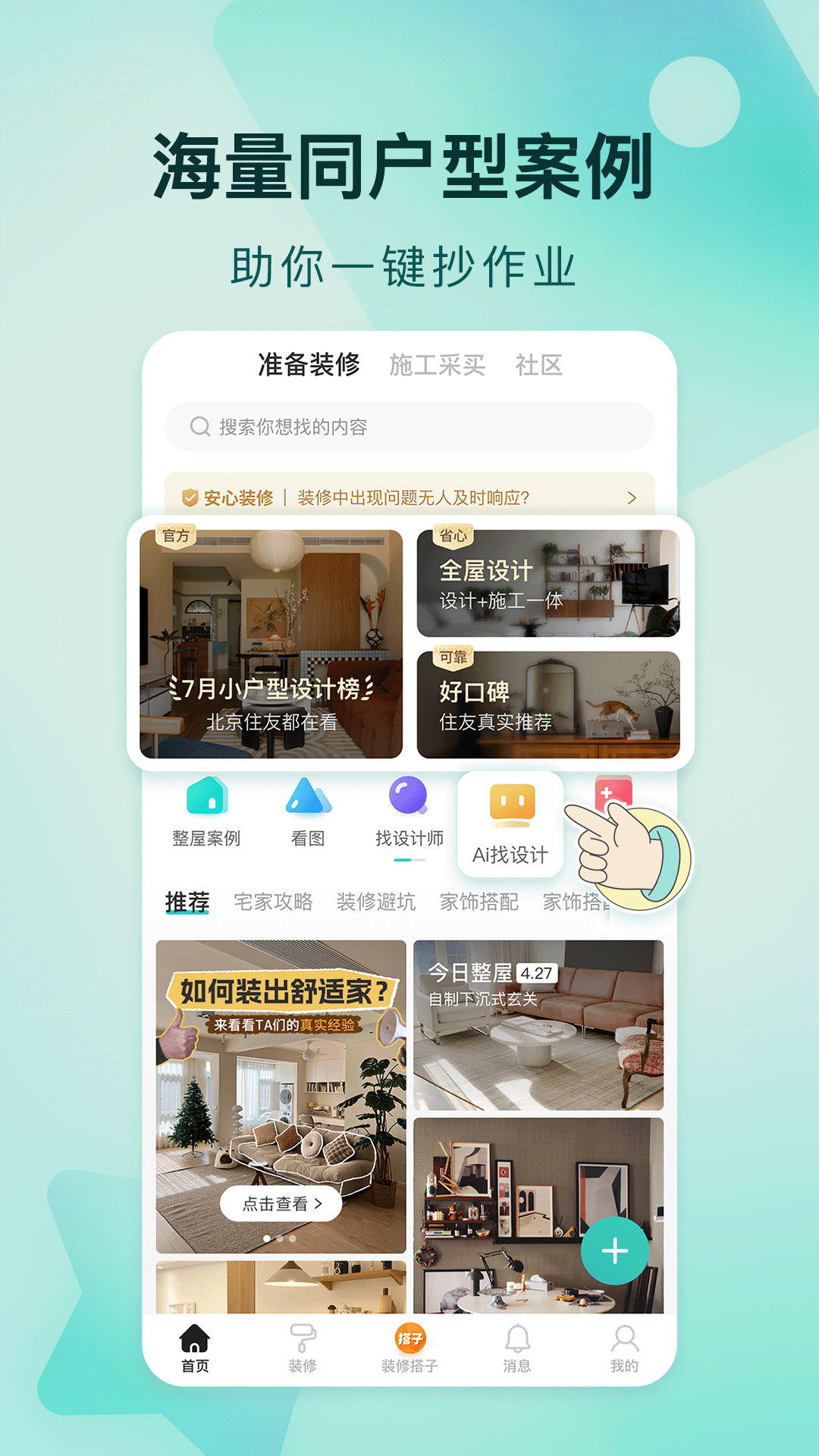 2、更多整屋案例和更多新认证设计师做参考,装修不费劲。
