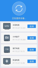 2、下载沙发管家手机版并安装,在手机上打开后,会自动搜索到小米电视,除了小米电视,我们也看到支持很多当下主流的智能电视、盒子。当搜索到小米电视的IP后,会出现提示安装的图标。