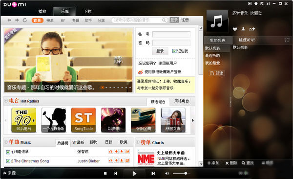 多米音乐的亮点在于它丰富多样的乐库歌曲菜单、电台、淘歌专辑,能满足各种音乐口味的人群需求。