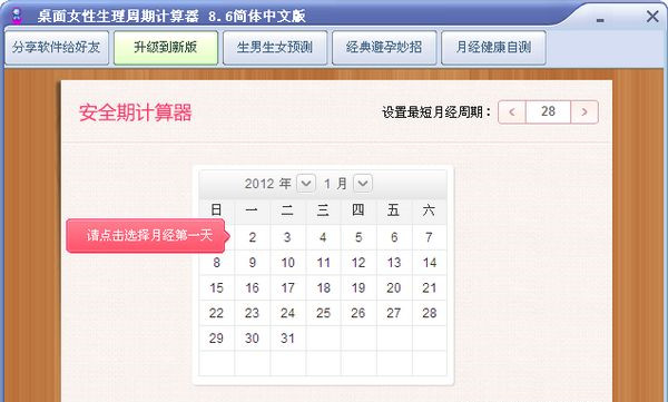 2楼 华军网友 2021-05-10 10:27:56女性生理周期计算器软件非常好用,下载速度很快,很方便!