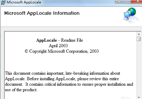 安装AppLocale后,AppLocale会在 WindowsAppPatch 文件夹中生成“apploc.tmp”文件,该文件可能会造成 Windows lnstaller 程序运作错误,导致其安装界面变成乱码,软件安装后,其菜单部分也会出现乱码,注册表信息出现错误,严重者会造成安装的程序无法运行。