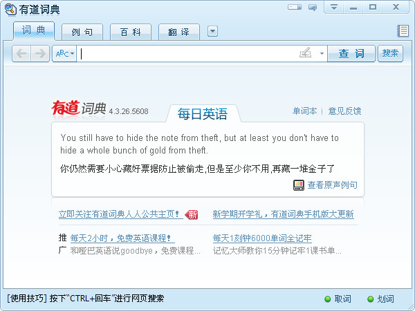 4、有道词典安装完成,点击“查词去”即可出现有道词典主界面