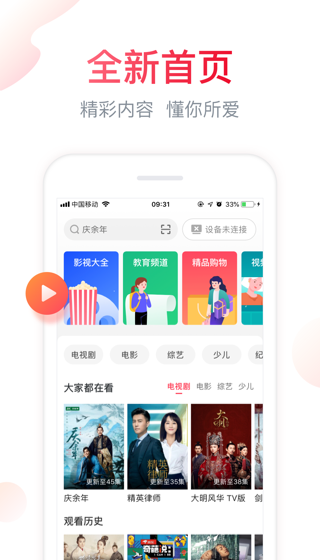 【高清直播】聚好看集CCTV1-CCTV15、CCTV风云足球、CCTVNEWS、CCTV国防军事、CCTV世界地理、江苏卫视、浙江卫视、东方卫视、安徽卫视、辽宁卫视、北京卫视、内蒙古卫视、青海卫视、贵州卫视、吉林卫视等各全国各大卫视及CIBN相关频道,知否知否应是绿肥红瘦、火王之千里同风、大江大河、外滩钟声、大帅哥、我们的四十年、金陵往事、吐槽大会、古董局中局等众多精彩节目不容错过!