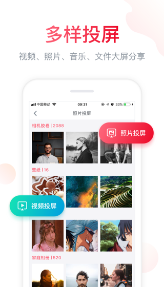 【照片/视频投屏】自拍靓照、精彩视频,轻轻一点就可以投屏到电视上与家人一起分享。