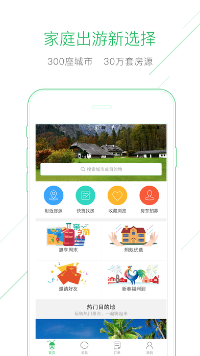 蚂蚁短租是国内最大的公寓民宿在线短租平台,致力于为家庭出游提供一种全新的住宿方式。为了满足用户“个性化”的住宿需求,蚂蚁短租平台上的房源类型包括独栋别墅、酒店式公寓、民宿、客栈、四合院、木屋、树屋、房车、帐篷等,各种类型的房子都应有尽有。可以说,只有你想不到,没有蚂蚁短租没有的。