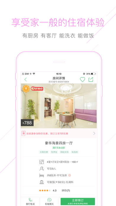 即时沟通不发愁, 如果对房源细节还有疑惑,可通过手机客户端与房东随时沟通,部分城市开通直播电话联系房东,房屋详情第一时间掌握,让您入住更加放心!