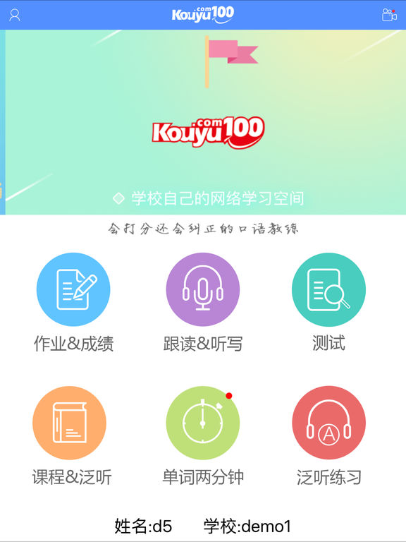 【2】打开口语100,选择自己所在的省、市、区、学校。