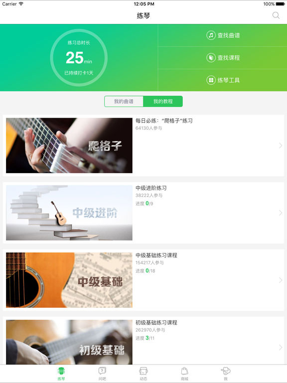 用户可以自由上传录制的音频或者视频作品,也可以跟谱录制作品,将自己满意的作品分享到社区供大家点评膜拜,也可以求助大神指点,或通过附近琴友找到知音互相线下切磋交流。