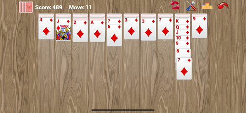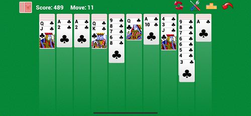 游戏开局只有每叠牌的第一张默认为翻开状态。当移动一叠牌所有已翻开牌到其他地方时,未翻开牌的中最上面的一张将自动翻开。