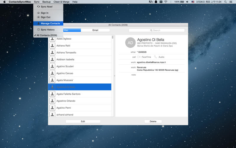 *智能的联系人比对算法,保证在Gmail和Mac联系人同步时,能够最大限度的合并同名联系人信息,防止出现重复的联系人或者更多的垃圾信息