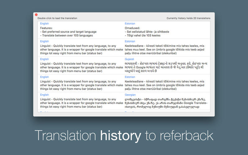 3楼 华军网友 2019-03-21 14:22:44超级好的平台,下载语言学家 - 菜单栏的语言翻译器非常方便!