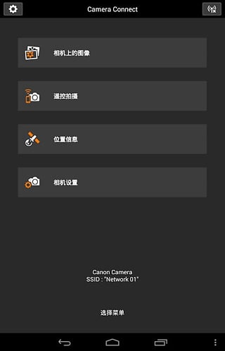 Connect软件,安装设置好后可以实现用手机遥控相机拍摄照片、浏览和保存相机上存储的图像等。