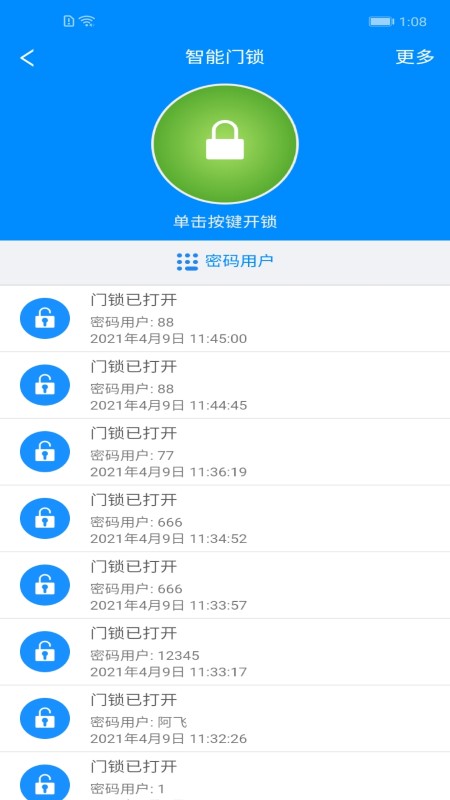 开锁记录查询:记录门锁开启时间、方式及用户,提升安全性。