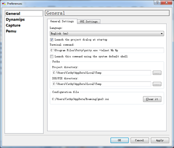 将默认的工程目录和IOS/PIXOS目录改变(temp文档容易被清理且不易找),我们可以在GNS3的安装目录(默认是C:Program FilesGNS3)下新建两个文件夹,一个叫temp一个叫IOS,分别放工程文件和IOS文件。